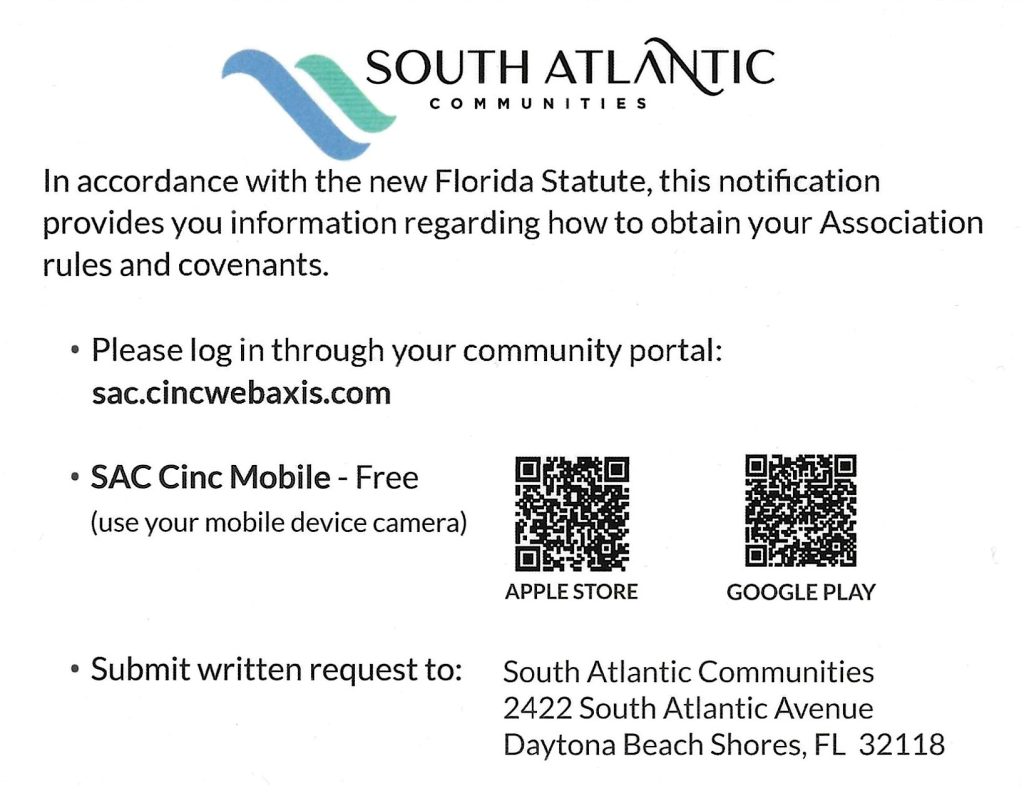 1) Add “South Atlantic Communities” as a new payee using the above address.